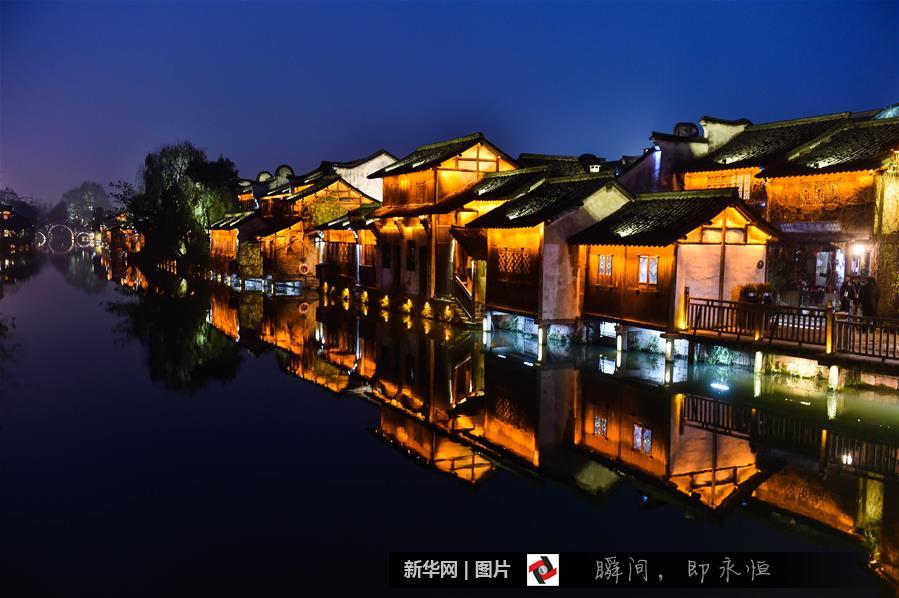 12月15日,烏鎮(zhèn)西柵呈現(xiàn)美麗的夜色,靜待大會開幕。