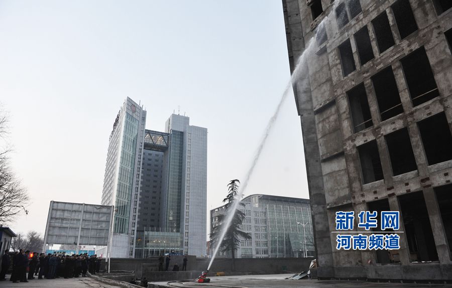 對建筑物30米高的模擬火點噴水。