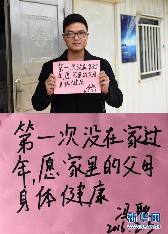 央廣網(wǎng)河南分網(wǎng)消息 2月5日,來自河南省駐馬店市的馮耿在良慶大橋立交工程建設(shè)工地上展示自己的新年寄語(拼版照片)。春節(jié)臨近,廣西南寧市良慶大橋(五象大道)立交工程建設(shè)工地的近千名建設(shè)者陸續(xù)回家了,剩下的幾名值班人將在異鄉(xiāng)度過這個春節(jié)。談起異鄉(xiāng)過新年,他們紛紛拿起紙筆寫下心中的感受和新年的祝福。新華社記者陸波岸攝