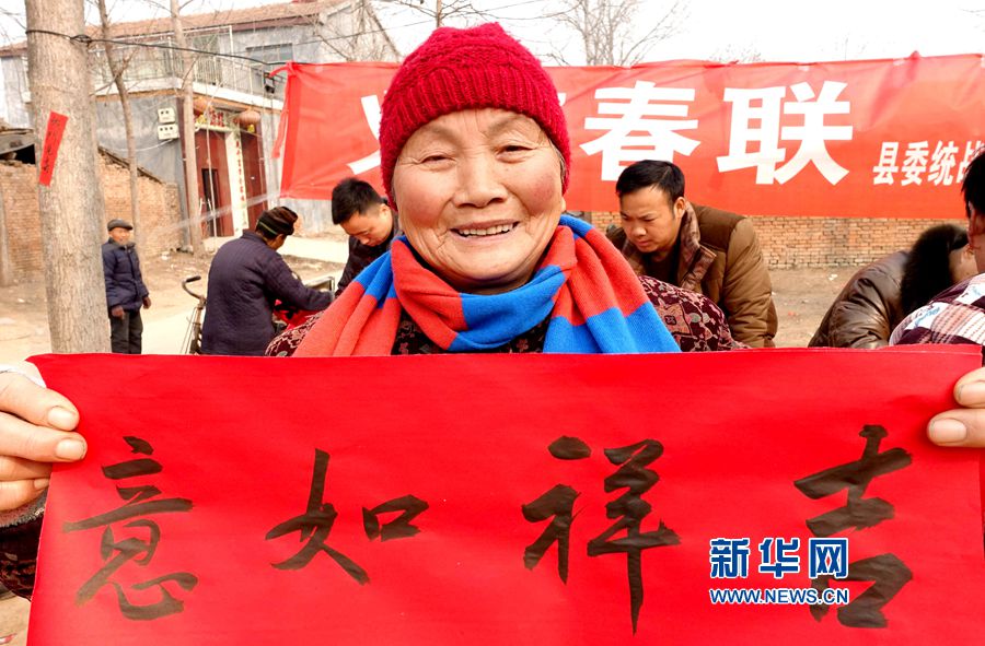 央廣網(wǎng)河南分網(wǎng)消息 春節(jié)臨近,河南省商丘市夏邑縣委統(tǒng)戰(zhàn)部組織部分夏邑籍中國書法家協(xié)會會員,來到該縣濟陽鎮(zhèn)濟北村,開展“義寫春聯(lián)迎新春”活動,書法家們?yōu)樵摯遑毨艏按迕瘳F(xiàn)場寫春聯(lián),送春聯(lián),把濃濃的節(jié)日祝福送給村民。新華網(wǎng)發(fā) (苗育才攝)