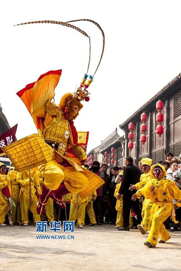 2016年2月4日,河南省滑縣大運(yùn)河畔的道口鎮(zhèn)歷史街區(qū)修繕一新,美猴王扮相的少年兒童表演節(jié)目,喜迎猴年新春佳節(jié)的到來。(王子瑞 攝 )