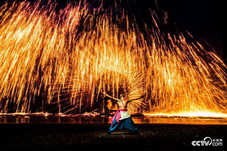 “打樹花”場面震撼 熔化鐵水潑墻