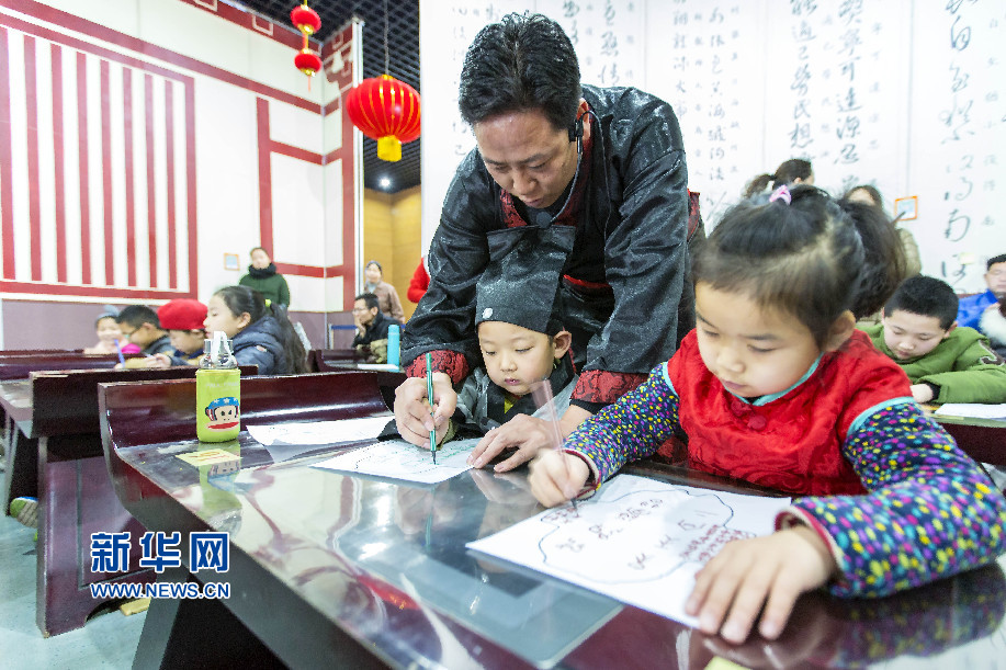 2016年2月14日,安陽市中國文字博物館二樓的“漢字驛站”里傳出了小朋友們的朗朗讀書聲,一群小朋友在這里學(xué)習(xí)甲骨文知識。