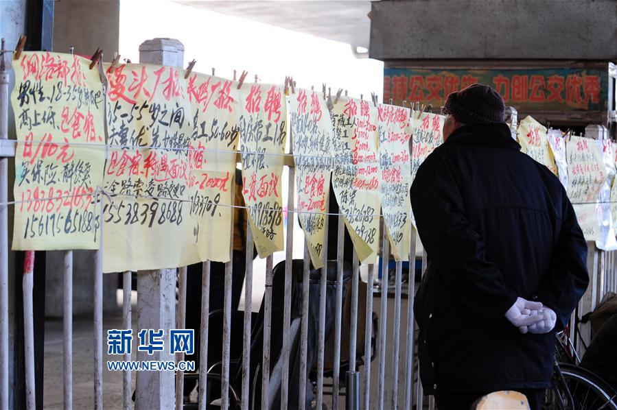 央廣網(wǎng)河南分網(wǎng)消息 2月15日,在鄭州解放路“勞務市場”,一位求職者在觀看用工需求信息。春節(jié)假期過后,在鄭州火車站旁的“勞務市場”和鄭州農(nóng)村人力資源中心市場等地,有不少人前來找工作。求職者以廚師和建筑工為主。新華社發(fā)(馮大鵬 攝)