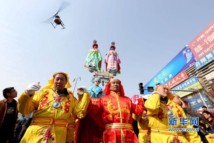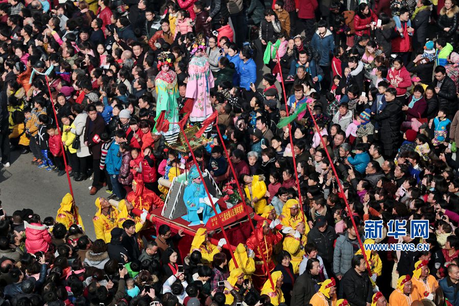 據(jù)介紹,抬閣是集歷史故事、神話傳奇于一體,融繪畫、戲曲、彩扎、紙塑、雜技等藝術(shù)為一身的漢族傳統(tǒng)民俗舞蹈。在木制的四方形小閣里有兩三個(gè)人扮飾戲曲故事中的人物,由別人抬著游行。抬閣已被列入國家級(jí)非物質(zhì)文化遺產(chǎn)名錄。抬閣的種類繁多,各地抬閣的藝術(shù)形式各有特色 ,以金壇抬閣、徽州抬閣、廣東抬閣、安陽抬閣和山西平陽《抬閣》最為著名。新華網(wǎng)發(fā)(畢興世 馬慶祥攝)