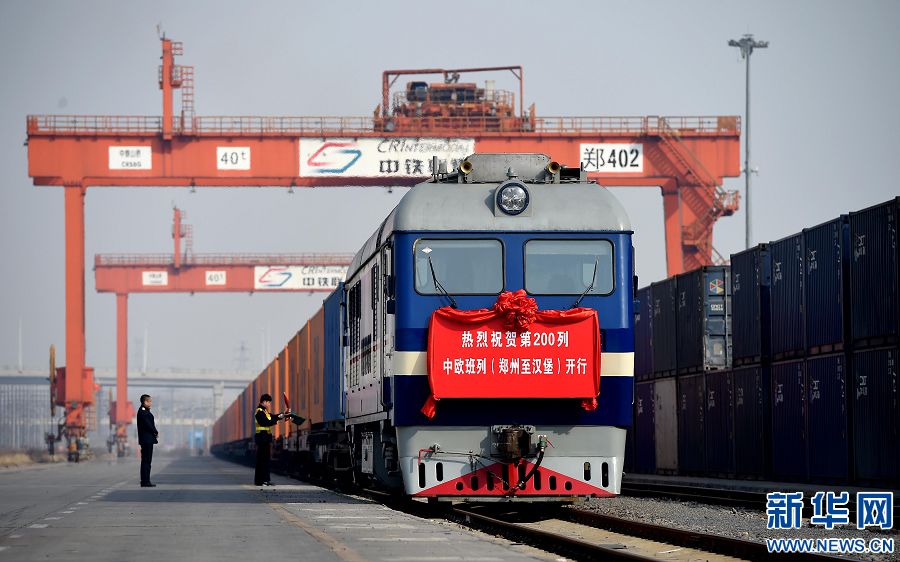 央廣網(wǎng)河南分網(wǎng)消息 當(dāng)日,第200列鄭州至漢堡的中歐班列從鄭州鐵路集裝箱中心站駛出。