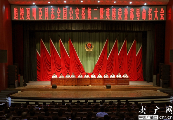 央廣網(wǎng)河南分網(wǎng)消息 8月29日,追授夏明臣同志全國公安系統(tǒng)二級英雄模范榮譽稱號命名大會在駐馬店市召開。會議中,與會領導向夏明臣同志的家屬頒發(fā)獎章、證書和獎金,并宣讀河南省委政法委《關于在全省政法系統(tǒng)開展向夏明臣同志學習的決定》。