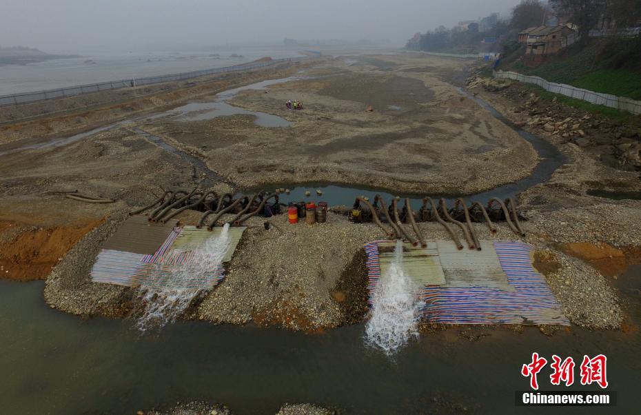 1月5日,四川彭山,考古發(fā)掘現(xiàn)場緊靠岷江,抽水機正不停排水。當日,四川眉山市彭山區(qū)江口沉銀遺址水下考古發(fā)掘全面啟動,發(fā)掘時間預計3個月?脊虐l(fā)掘結束后,當?shù)貙⒒I建張獻忠江口沉銀博物館。中新社記者 劉忠俊 攝