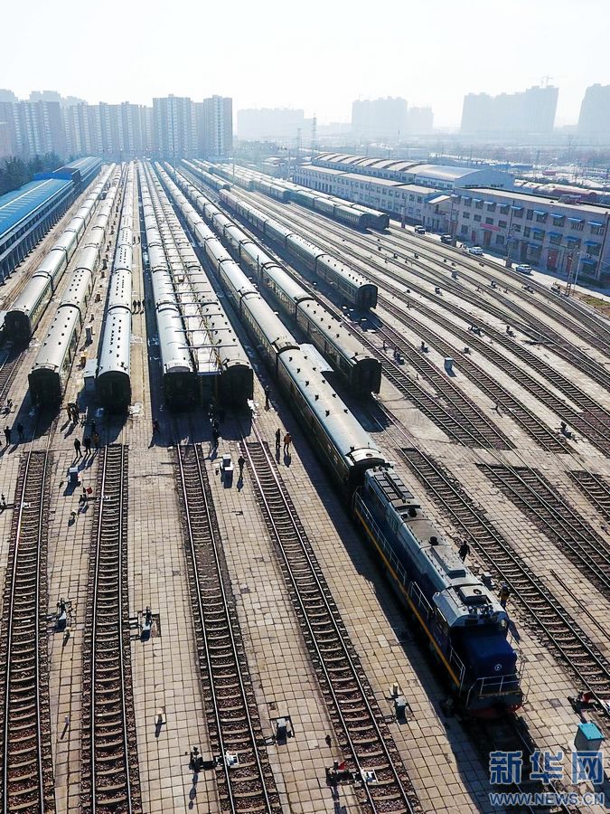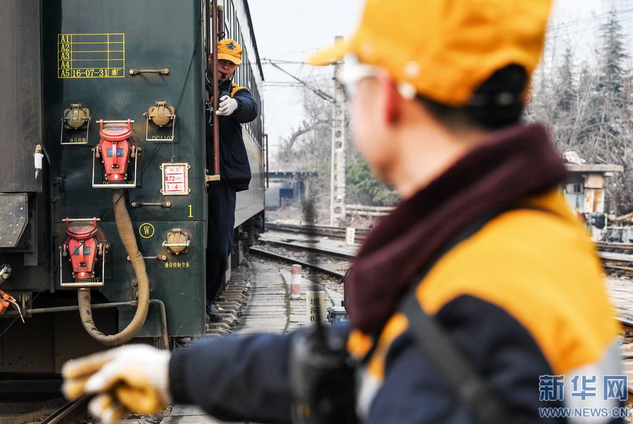 一列客車在完成編組后,駛向鄭州火車站(1月20日攝)。 春節(jié)臨近,鐵路迎來節(jié)前客流高峰。鐵路運(yùn)輸工作中,離不開一群為火車“穿針引線”的人——調(diào)車員,他們24小時(shí)不間斷輪班,保證列車按時(shí)出入庫,并根據(jù)車次、客流的變化,對列車車廂進(jìn)行拆分和重新編組,保障春運(yùn)期間列車安全、準(zhǔn)時(shí)運(yùn)送旅客。 鄭州火車站運(yùn)轉(zhuǎn)車間調(diào)車長程浩說:“我們的工作是把一節(jié)節(jié)車廂編組成一列火車,將其中有問題的車廂換掉,送檢、清洗,再將整列火車?yán)交疖囌景l(fā)車,形象點(diǎn)說就是為火車穿針引線。”在鄭州火車站運(yùn)轉(zhuǎn)車間,調(diào)車小組一般由5人組成:一名調(diào)車長,四名組員。組長負(fù)責(zé)指揮調(diào)車任務(wù),組員負(fù)責(zé)檢查和監(jiān)督列車車廂之間的分解與連掛,為車輛進(jìn)行排風(fēng)、摘管等。 春運(yùn)期間,鄭州火車站運(yùn)轉(zhuǎn)車間平均每天要對70余列近1300輛車進(jìn)行調(diào)車作業(yè),比平時(shí)增加30%左右的工作量。 新華社記者 李博 攝