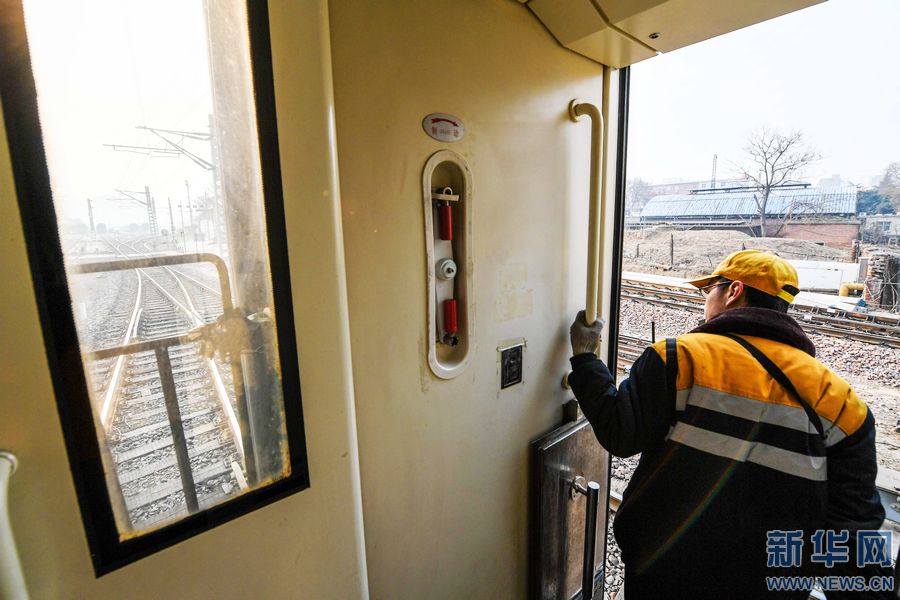 1月24日,一名調(diào)車員在車廂向外瞭望。 春節(jié)臨近,鐵路迎來節(jié)前客流高峰。鐵路運(yùn)輸工作中,離不開一群為火車“穿針引線”的人——調(diào)車員,他們24小時(shí)不間斷輪班,保證列車按時(shí)出入庫,并根據(jù)車次、客流的變化,對列車車廂進(jìn)行拆分和重新編組,保障春運(yùn)期間列車安全、準(zhǔn)時(shí)運(yùn)送旅客。 鄭州火車站運(yùn)轉(zhuǎn)車間調(diào)車長程浩說:“我們的工作是把一節(jié)節(jié)車廂編組成一列火車,將其中有問題的車廂換掉,送檢、清洗,再將整列火車?yán)交疖囌景l(fā)車,形象點(diǎn)說就是為火車穿針引線!痹卩嵵莼疖囌具\(yùn)轉(zhuǎn)車間,調(diào)車小組一般由5人組成:一名調(diào)車長,四名組員。組長負(fù)責(zé)指揮調(diào)車任務(wù),組員負(fù)責(zé)檢查和監(jiān)督列車車廂之間的分解與連掛,為車輛進(jìn)行排風(fēng)、摘管等。 春運(yùn)期間,鄭州火車站運(yùn)轉(zhuǎn)車間平均每天要對70余列近1300輛車進(jìn)行調(diào)車作業(yè),比平時(shí)增加30%左右的工作量。 新華社記者 李博 攝 -