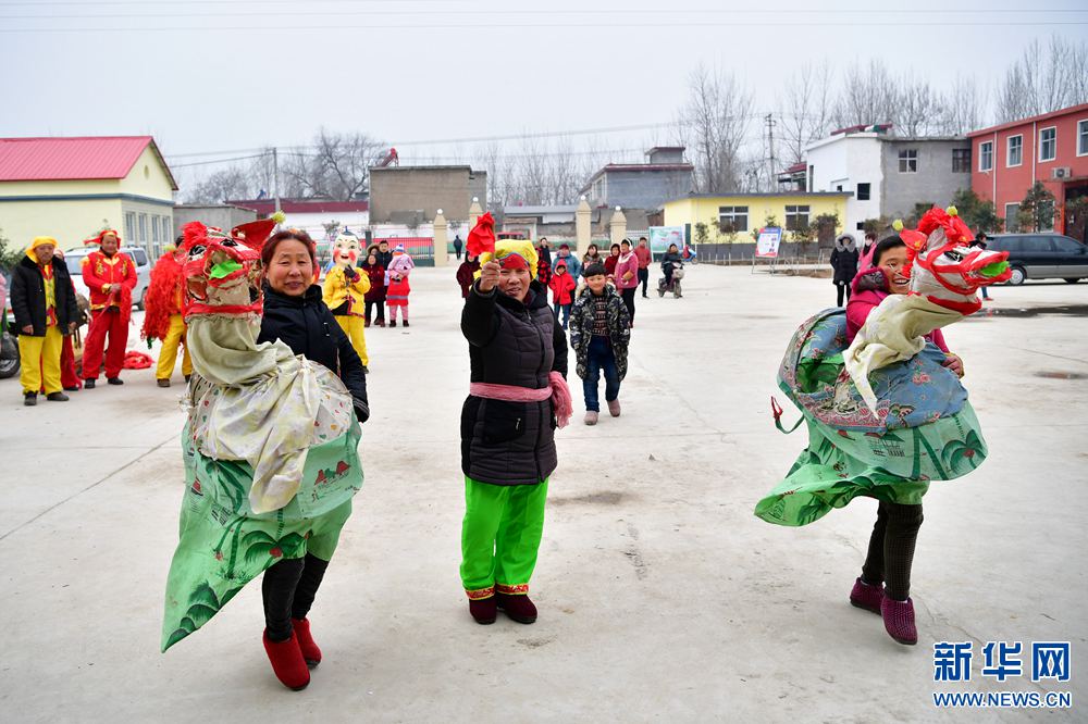 2月7日,村民在羅閣村文化舞臺表演舞獅。 當日,河南省駐馬店市西平縣盆堯鎮(zhèn)羅閣村的文化舞臺熱鬧非凡,村民表演了舞獅、豬八戒背媳婦、抬轎子、劃旱船、騎竹馬、吹喇叭等民俗節(jié)目,吸引眾多村民前來觀看。新華社記者馮大鵬攝 -