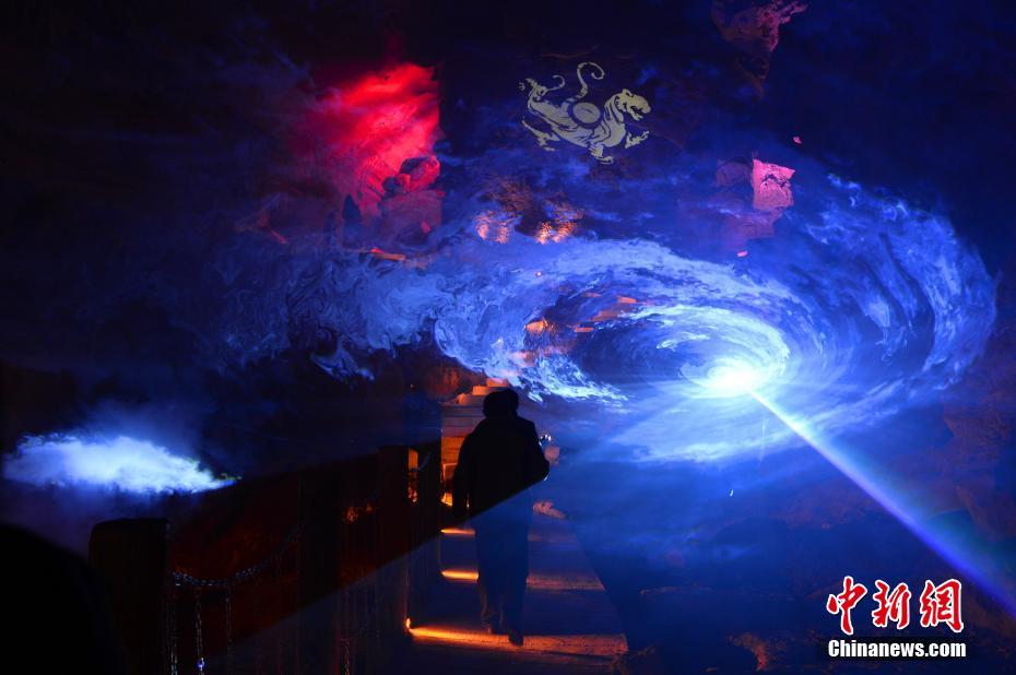 3月6日,來自全國的百余名游客慕名來到湖北五峰土家族自治縣長生洞,觀看洞內(nèi)的“崖壁星空”景觀首秀。長生洞位于北緯30°地理圈,其形成距今約1.4億年,洞口巧生東西峭壁間,縱深300米,橫跨1500米,上下三層,高約50至100米。洞內(nèi)分布著“穿越時空”“轉(zhuǎn)世蓮花”“崖壁星空”等20多處景點,千姿百態(tài)的鐘乳石與七彩幻燈交相輝映,讓人在欣賞后嘆為觀止。五峰縣位于湖北省西南部,以喀斯特地貌為主,平均海拔1100米,是一個少數(shù)民族山區(qū)縣。董曉斌 攝 -