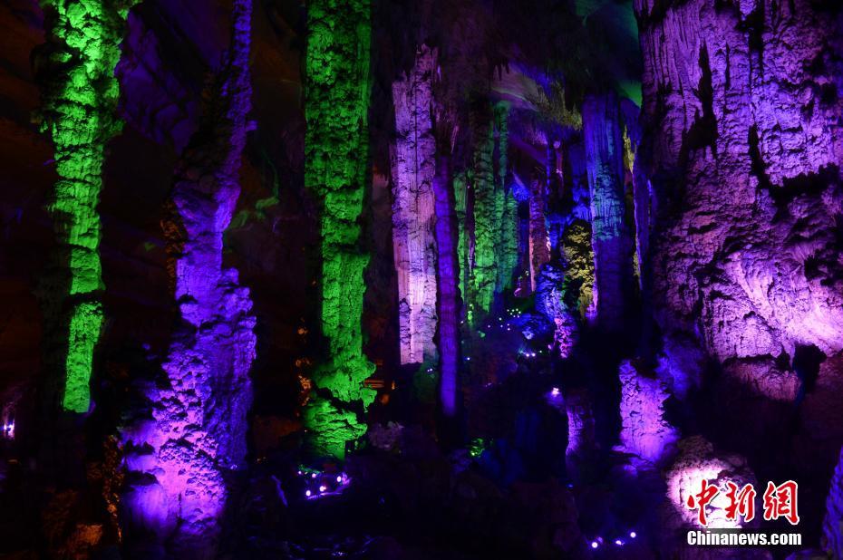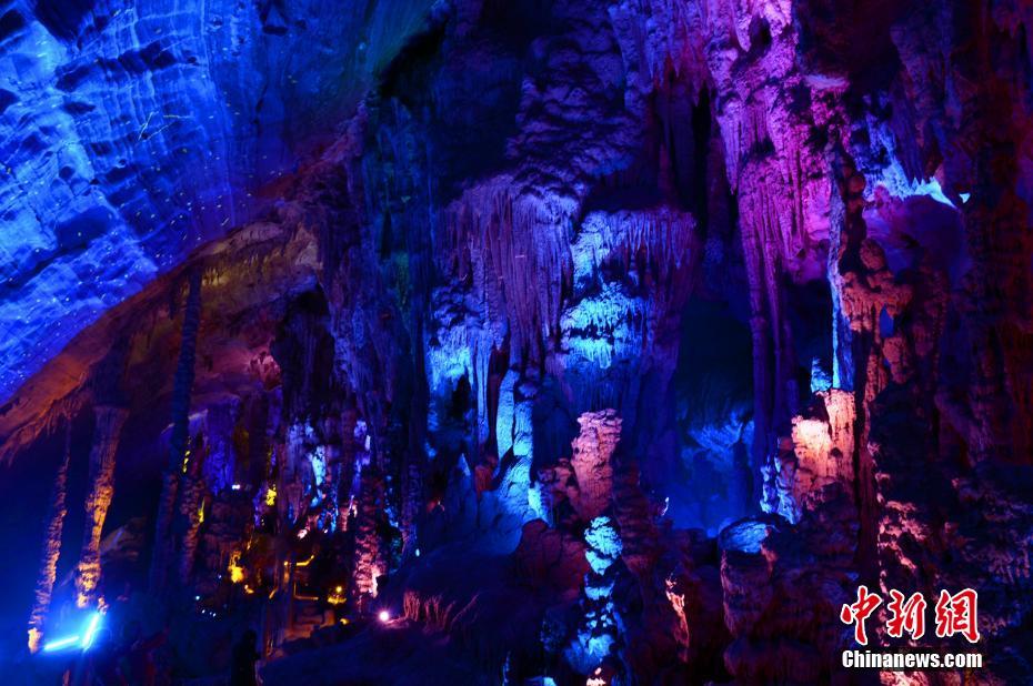 3月6日,來自全國的百余名游客慕名來到湖北五峰土家族自治縣長生洞,觀看洞內(nèi)的“崖壁星空”景觀首秀。長生洞位于北緯30°地理圈,其形成距今約1.4億年,洞口巧生東西峭壁間,縱深300米,橫跨1500米,上下三層,高約50至100米。洞內(nèi)分布著“穿越時空”“轉(zhuǎn)世蓮花”“崖壁星空”等20多處景點,千姿百態(tài)的鐘乳石與七彩幻燈交相輝映,讓人在欣賞后嘆為觀止。五峰縣位于湖北省西南部,以喀斯特地貌為主,平均海拔1100米,是一個少數(shù)民族山區(qū)縣。圖為千姿百態(tài)的石鐘乳與七彩燈交相輝映。鐘欣 攝 -