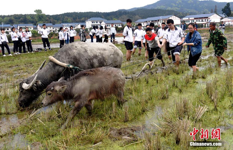 4月3日,江西新余市渝水區(qū)良山鎮(zhèn)推出“農(nóng)耕文化體驗(yàn)游”活動(dòng),來自江西省新余市第六中學(xué)的學(xué)生們走進(jìn)田間地頭,學(xué)習(xí)犁田、育秧等農(nóng)活,體驗(yàn)農(nóng)耕文化,感受稼穡之艱。周亮 攝 -
