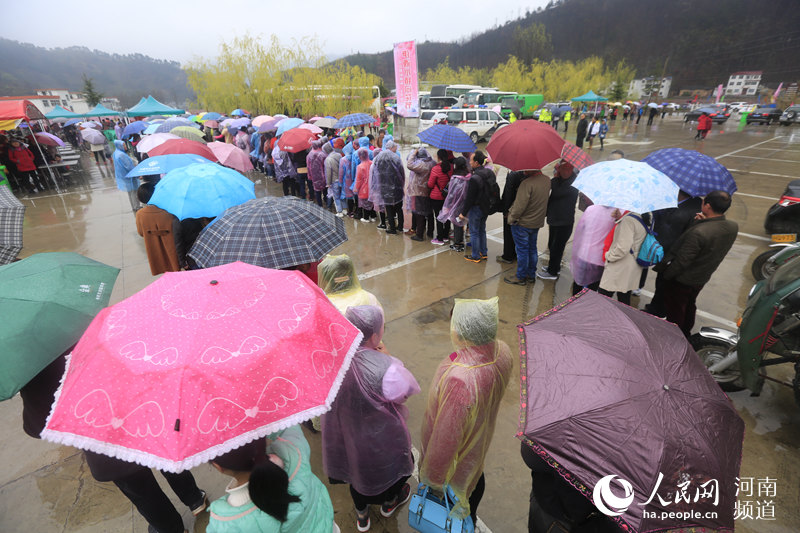 4月9日,河南欒川陶灣鎮(zhèn)一景區(qū)免費向游客發(fā)放餃子,雖然天下著大雨,但是陸續(xù)吸引千余名游客自覺排隊等候品嘗免費的午餐!帮溩友纭眻雒鎵延^,據(jù)了解當(dāng)天景區(qū)免費送出的餃子達(dá)一噸有余!