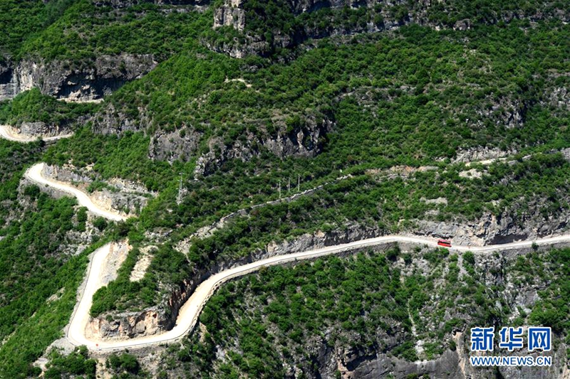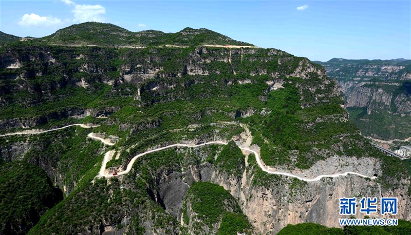 這是5月16日拍攝的山西省平順縣的虹梯關(guān)“掛壁公路”。山西省平順縣的虹梯關(guān)“掛壁公路”位于太行山峭壁之上,長度約10公里,鑿山穿洞,道路艱險,風(fēng)光獨特。 新華社發(fā)(梁棟 攝) -