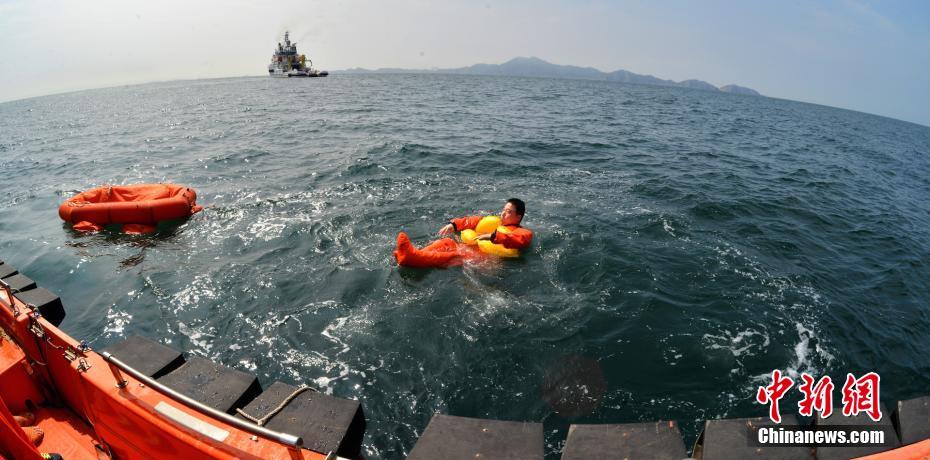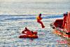 16名中國航天員和2名歐洲航天員,8月21日在山東省煙臺市附近海域圓滿完成了為期17天的海上救生訓練任務。圖為訓練期間,8月15日,歐洲航天員馬蒂亞斯·約瑟夫嘗試從小艇躍入水面。 中新社發(fā) 朱九通 攝 -