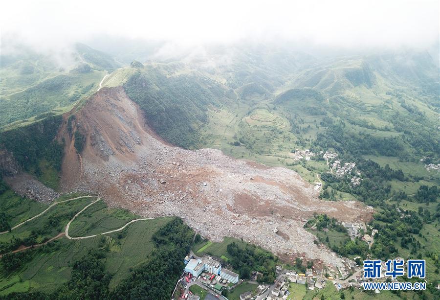航拍山體滑坡現(xiàn)場(chǎng)(8月29日攝)。截至8月29日16時(shí)30分,貴州省納雍縣山體崩塌地質(zhì)災(zāi)害救援現(xiàn)場(chǎng)已搜救出25人,其中17人死亡、8人受傷,目前尚有18人失聯(lián)。據(jù)悉,崩塌山體距離災(zāi)害地垂直落差約200米,崩塌巖體約為60余萬(wàn)立方米。災(zāi)害發(fā)生后,當(dāng)?shù)亟M織專業(yè)力量全力以赴晝夜不休開(kāi)展救援。新華社記者陶亮攝 -