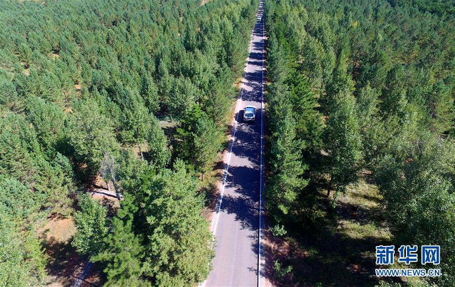 車輛行駛在內(nèi)蒙古伊金霍洛旗境內(nèi)的樟子松基地(9月7日攝)! -