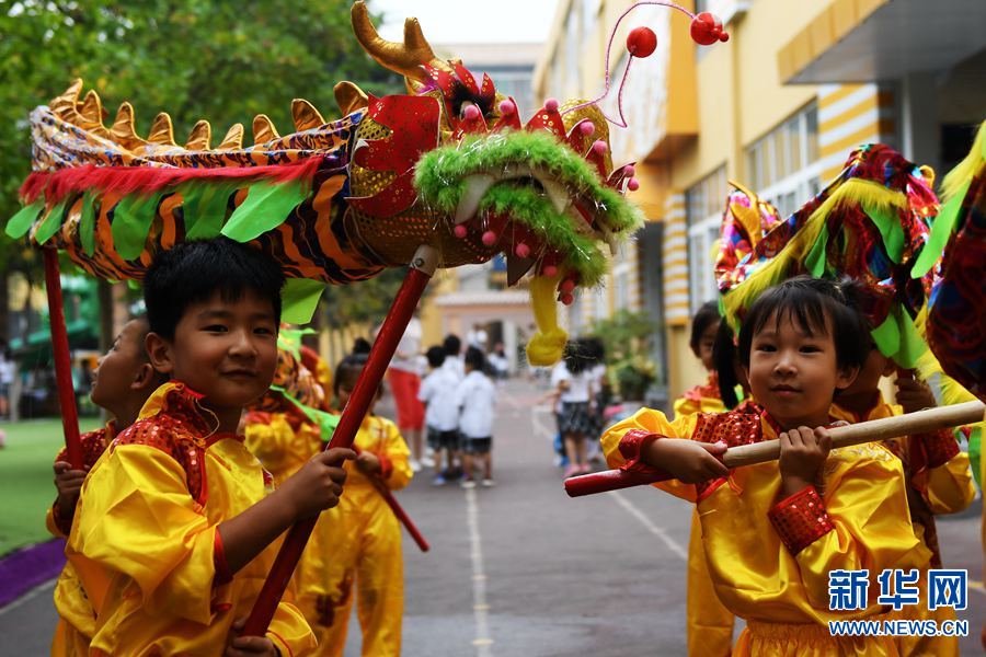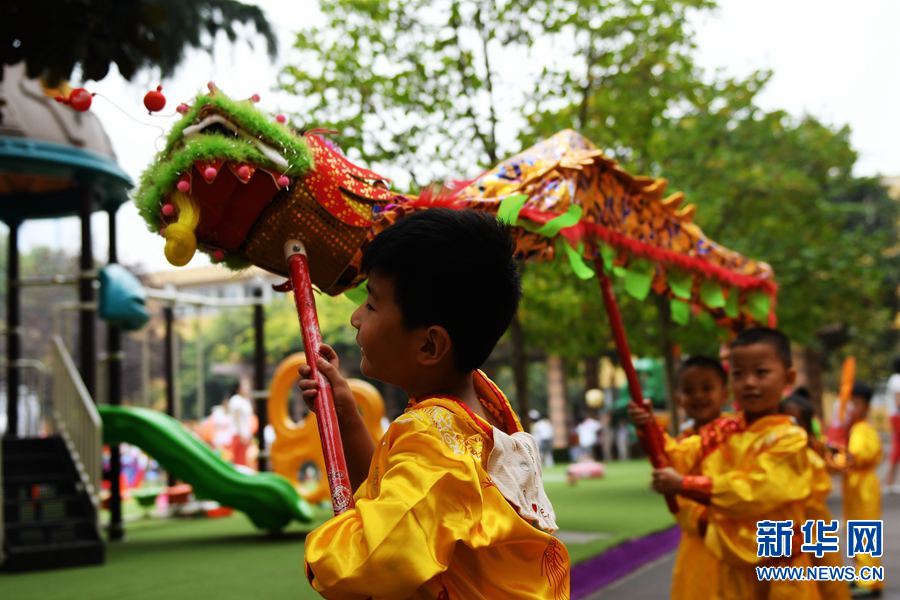 • 7月19日,在南陽市實驗幼兒園,孩子們在老師的帶領(lǐng)下進(jìn)行舞龍游戲。