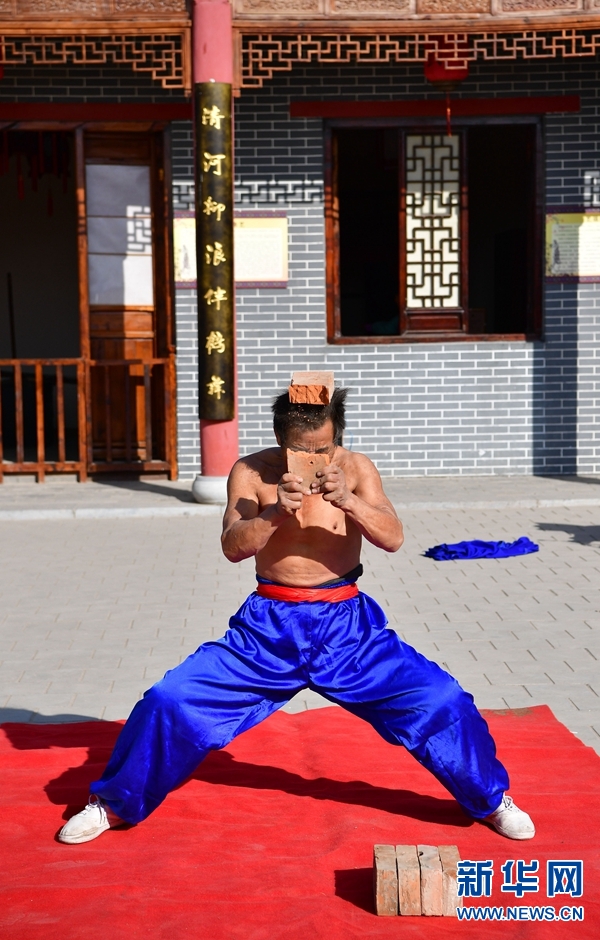 在河南省濮陽市華龍區(qū)岳村鄉(xiāng)東北莊村一個雜技小院,一位藝人表演硬氣功“劈磚”(11月22日攝)。 中原地區(qū)是中國雜技的主要起源地之一,中原雜技首推河南濮陽,濮陽雜技源自東北莊。東北莊同河北吳橋并稱為“中國雜技南北故里”。 如今的東北莊,村里以雜技為主題的文化墻到處都是,雜技小院每天熱鬧非凡,明清小巷依然有不少孩童在練習(xí),專業(yè)雜技學(xué)校迎來四海學(xué)員……雜技,讓古老的東北莊煥發(fā)生機和活力,也在改變著這里人民的生活。 新華社記者馮大鵬攝 -
