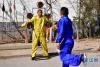 在河南省濮陽市華龍區(qū)岳村鄉(xiāng)東北莊村一個雜技小院,藝人們在表演“飛斧”技藝(11月22日攝)。 中原地區(qū)是中國雜技的主要起源地之一,中原雜技首推河南濮陽,濮陽雜技源自東北莊。東北莊同河北吳橋并稱為“中國雜技南北故里”。 如今的東北莊,村里以雜技為主題的文化墻到處都是,雜技小院每天熱鬧非凡,明清小巷依然有不少孩童在練習(xí),專業(yè)雜技學(xué)校迎來四海學(xué)員……雜技,讓古老的東北莊煥發(fā)生機和活力,也在改變著這里人民的生活。 新華社記者馮大鵬攝