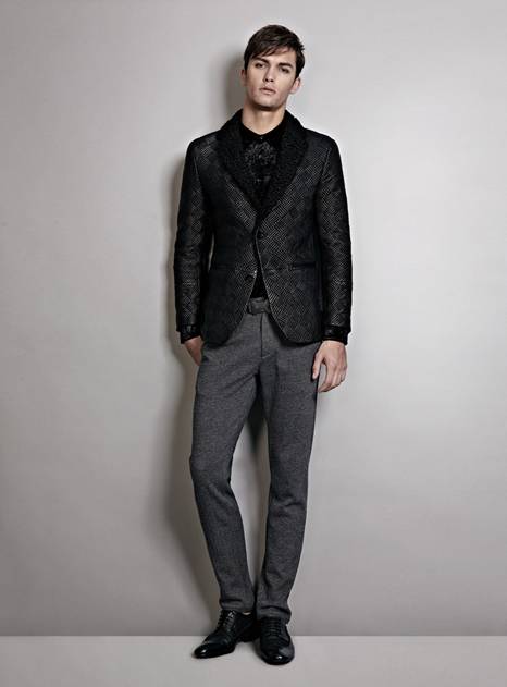 這款毛領(lǐng)繡線壓花羊皮西服充分詮釋了奢華的含義,大身采用羔羊皮拼接工藝,羔羊皮面又采用了復(fù)雜的繡線壓花工藝,由于繡線壓花工藝非常復(fù)雜,仿冒者想用較低成本仿制這樣的產(chǎn)品幾乎沒有可能。為了體現(xiàn)VJC一貫追求的創(chuàng)新和與眾不同,設(shè)計師在繡線壓花的羊皮大身形成的奢華和優(yōu)雅風(fēng)格基礎(chǔ)上,選用了粗獷不羈的黑色羊毛皮領(lǐng),羊毛皮領(lǐng)上的羊毛維持了原有的自然卷曲,體現(xiàn)了精英男士在堅持品位同時,對卓越的不懈追求。