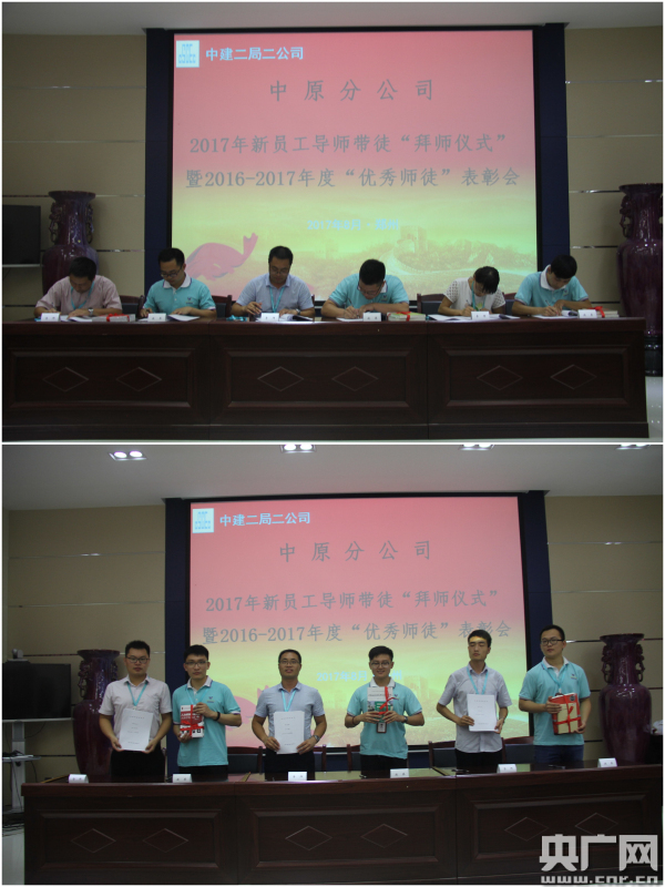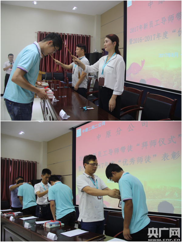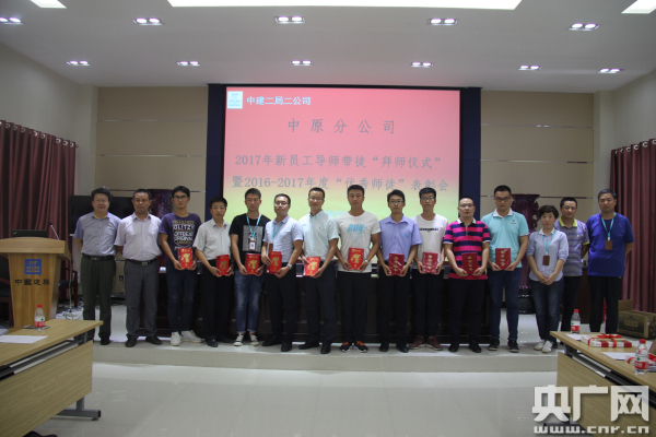央廣網(wǎng)河南分網(wǎng)8月16日消息 導(dǎo)師帶徒活動(dòng)作為中建二局二公司中原分公司的品牌活動(dòng),尤其受到了領(lǐng)導(dǎo)的高度重視。為了保障活動(dòng)的有效落地,發(fā)揮出“傳、幫、帶”的作用,前期由人力資源部及團(tuán)委認(rèn)真策劃、精心籌備,共對(duì)13個(gè)導(dǎo)師帶徒活動(dòng)點(diǎn)進(jìn)行全覆蓋參與。中原分公司總部作為導(dǎo)師帶徒活動(dòng)的最后一站,8月11日,2017屆新員工導(dǎo)師帶徒拜師儀式暨2016年優(yōu)秀師徒表彰會(huì)在分公司蒼狼學(xué)院隆重召開。
