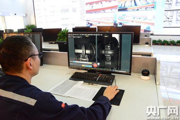 2月5日上午8點(diǎn)15分,在鄭州動(dòng)車段TEDS集中監(jiān)控中心,郭江南盯著電腦屏幕,格外專注。屏幕上的圖片,是用幾千張圖片拼接好的連貫圖像。他不時(shí)用鼠標(biāo)在屏幕上畫畫圈圈。
