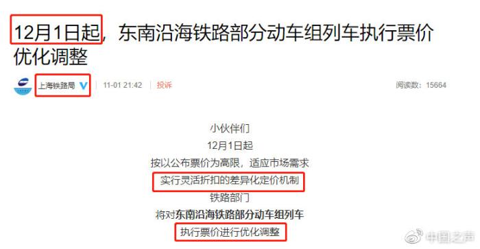 自2013年鐵道部被撤銷,鐵路政企分開以來,鐵路部門就在持續(xù)探索市場化發(fā)展的道路;疖嚻备惆ā按蛘邸痹趦(nèi)的各種“優(yōu)化調(diào)整”,實際上早已不是什么新鮮事——早在2016年,國家發(fā)改委就曾下發(fā)通知宣布,“從2016年起,放開高鐵動車票價,改由鐵總自行定價”。自那以后,火車票價尤其是高鐵動車組列車的票價,就越來越靈活,出現(xiàn)了“打折浮動”、“一日一價”等更加豐富多樣的定價形式。