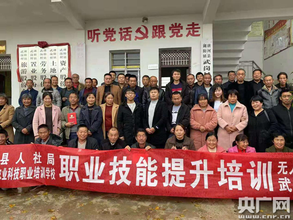 央廣網(wǎng)南陽11月19日消息(記者 彭華 通訊員 陳炳謙)為進(jìn)一步提升和增強(qiáng)貧困戶(脫貧戶)群眾就業(yè)能力、創(chuàng)業(yè)本領(lǐng),拓展增收致富渠道,夯實(shí)就業(yè)扶貧基礎(chǔ),確保貧困戶持續(xù)增收穩(wěn)脫貧。11月13日,唐河縣湖陽鎮(zhèn)在武崗村農(nóng)民學(xué)校舉辦植保無人機(jī)飛行駕駛技術(shù)首期培訓(xùn)班,武崗村貧困戶(脫貧戶)中有勞動(dòng)能力人員及新型農(nóng)村合作社、種糧大戶等共計(jì)60余人參加培訓(xùn)。培訓(xùn)班由唐河縣人社局牽頭承辦,湖陽鎮(zhèn)扶貧辦組織實(shí)施,唐河縣湯紅農(nóng)業(yè)科技職業(yè)技術(shù)學(xué)校老師為參訓(xùn)學(xué)員授課。