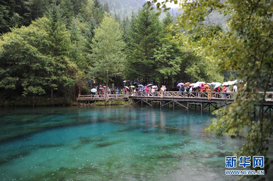 游客在游覽四川省九寨溝景區(qū)(2013年9月3日攝) 。