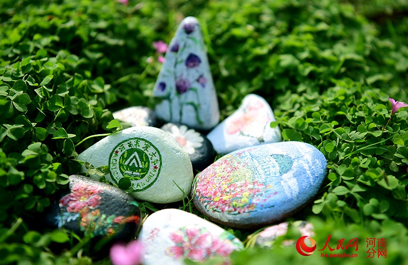 央廣網(wǎng)河南分網(wǎng)消息 去年,一組樹葉上的素描畫讓河南農(nóng)業(yè)大學的幾名大一新生成了“網(wǎng)紅”。才過去幾個月時光,幾位同學又腦洞大開,打起了路邊鵝卵石的主意。不起眼的小石頭,一旦著了油彩,搖身一變就成了藝術(shù)品。