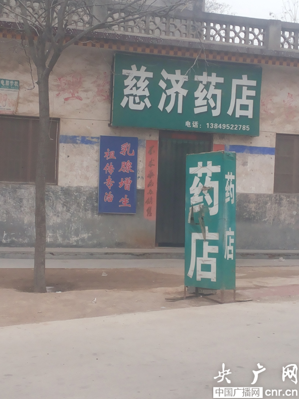 元月7日,在溫縣岳村鄉(xiāng)方頭村,有一家名為“慈濟(jì)藥店”的藥房,門(mén)口還掛有“專治乳腺增生”的廣告招牌,店主是一位五十多歲的男性。記者稱牙疼需要診治,該男子表示:“你找我就是找對(duì)人了,我專治牙疼”。接著,他便頭也不抬,連病情也不問(wèn),隨即包好了六小包藥遞給記者:“給,20分鐘保準(zhǔn)止住疼,一共八塊錢(qián)”。