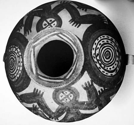 對(duì)于中原巖畫(huà)與彩陶紋飾的相像這一現(xiàn)象,馬寶光分析認(rèn)為,彩陶紋與凹穴巖畫(huà)都是具有生殖崇拜內(nèi)涵的文化現(xiàn)象。