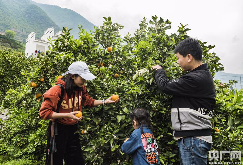 秭歸縣豐悅臍橙合作社社員劉國華樂呵呵地為游客將剛采摘的新鮮倫晚臍橙進行裝箱打包!笆昼姾筮@些橙子就可以通過快遞發(fā)出去!”劉國華自豪地指著不遠處一幢漂亮的小別墅:“臍橙果換來的!做電商、搞釆摘游,經(jīng)營方式靈活點,橙子可以更值錢。去年我家賣了16萬,在村里只是中等水平!