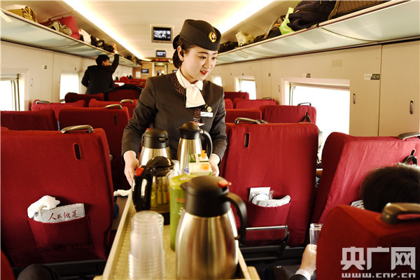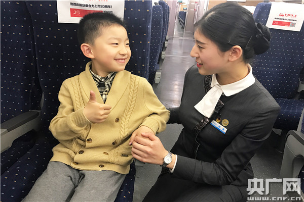 央廣網(wǎng)武漢5月4日消息(通訊員易娜)在宜昌東開往北京西的G516次動車上,獨自帶著自己孩子乘車的武女士因為辦理了車票延長而沒有座位在車廂內(nèi)徘徊。乘務員看到以后立刻將她帶到了人不多的餐車車廂并幫她安排好座位,乘務員的暖心舉動讓她很感動!拔腋杏X他們的服務特別熱情,我很感謝她們,因為我自己帶孩子在外面挺累的,以前坐高鐵我得抱著她,這次坐高鐵,把我們領到這,我挺感謝她們的!