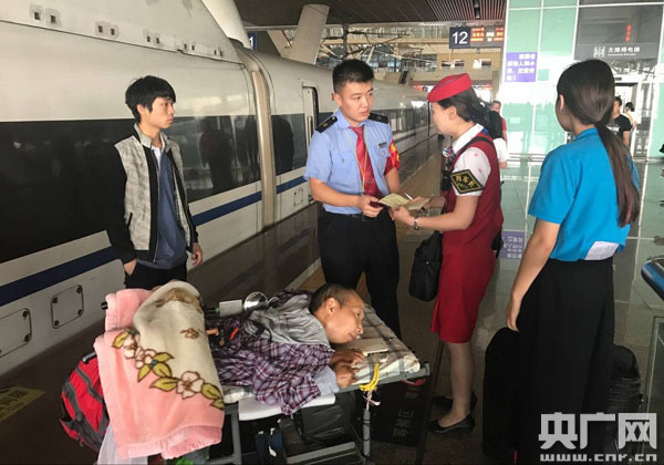 央廣網(wǎng)荊州6月6日消息(記者張卓 通訊員周運(yùn)華 李婷)6月6日,一重病旅客乘高鐵從荊州經(jīng)武漢轉(zhuǎn)乘前往昆明,武漢客運(yùn)段站車聯(lián)動開辟綠色通道,幫助重病旅客順利轉(zhuǎn)乘。