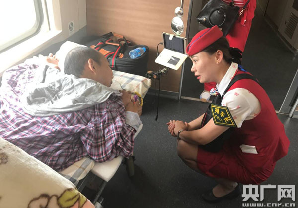 上午9點(diǎn)19分左右,由武漢客運(yùn)段擔(dān)當(dāng)?shù)腉1034次高鐵動車組列車?吭谇G州站。此時,荊州車站送來一名重病旅客,據(jù)了解,該旅客患有強(qiáng)制性關(guān)節(jié)炎,全身除了眼睛能動外,四肢都無法伸直,全部彎曲在頭部的兩邊。當(dāng)班列車長李婷了情況解后,立即與其他旅客協(xié)商對座位進(jìn)行調(diào)整,在她的動員下,許多旅客紛紛相讓,給重病旅客營造了一個寬松的乘車環(huán)境。