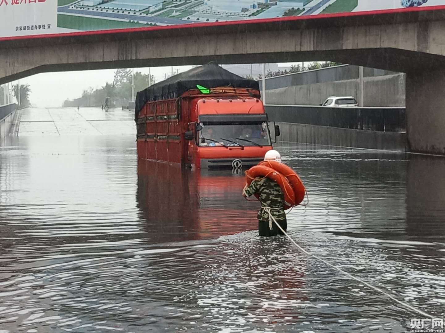 當(dāng)日上午9時許,消防部門接到一起報警,一輛大貨車在經(jīng)過襄陽市余家湖南環(huán)路工業(yè)區(qū)一處涵洞時,導(dǎo)致車輛涉水熄火,包括駕駛員在內(nèi)的兩人被困水中。