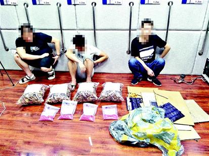 武漢海關(guān)緝私局昨透露,本月12日在警方配合下,攜緝私犬“金光”“芬迪”實施查緝,打掉一個從緬甸走私毒品到漢銷售的團(tuán)伙,抓獲嫌疑人3名,查獲麻果12000顆。毒品系從緬甸走私入境到云南邊境勐?h城后,再借快遞渠道郵寄到漢,毒品暗藏快遞包裹中,以干蘑菇作掩護(hù)。楚天都市報記者謝玲 通訊員何宇翔 袁劍 實習(xí)生盧建敏攝影報道