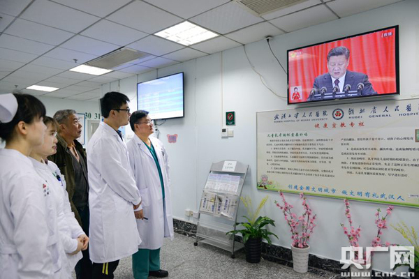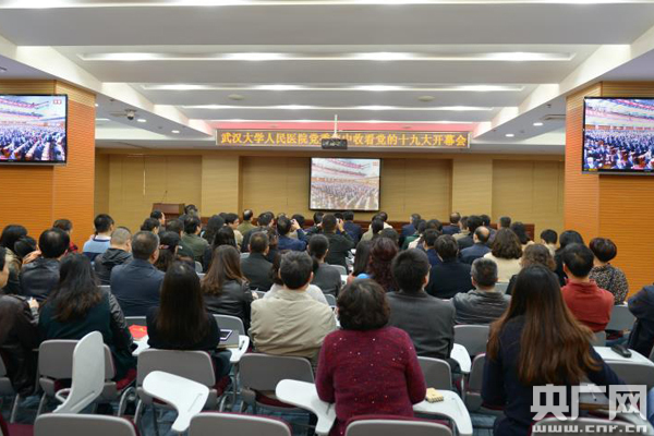 央廣網(wǎng)北京10月18日消息(記者張毛清 通訊員杜巍巍 高婷)18日上午,在武漢大學(xué)人民醫(yī)院,在院黨委書記萬紅慧的精心組織下,從學(xué)術(shù)活動(dòng)中心的黨的直播分會(huì)場到各病區(qū)、候診區(qū)的電視轉(zhuǎn)播,干部、職工以及病人以多種形式收看了十九大開幕盛況。