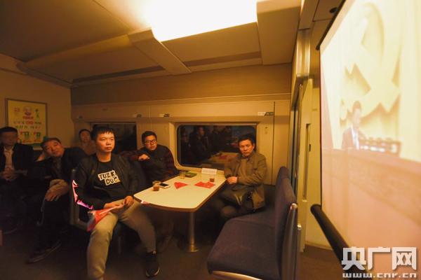 10月18日,中國共產黨第十九次全國代表大會開幕,為了讓旅途中的旅客能夠看到開幕式直播,武漢客運段在各次列車上準備了筆記本電腦、投影儀等電子設備,與旅客在列車上一起收看十九大開幕會直播。