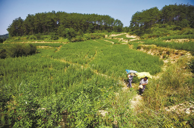 湖北蘄春,盛產(chǎn)艾草!霸谖覀儚埌矜(zhèn),38個(gè)村,村村種艾,家家門(mén)前屋后有艾。”當(dāng)?shù)厝艘贿呎f(shuō),一邊伸手指向田野。一片片田地里,艾草正在旺盛生長(zhǎng),“一些山間的荒地,也開(kāi)始種植艾草!