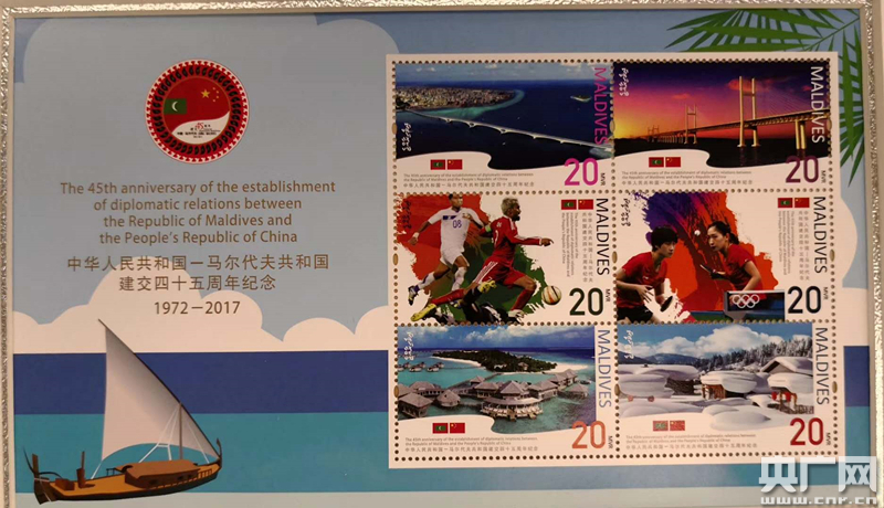 圖為:中國-馬爾代夫建交45周年特別紀念郵票(中交二航局供圖)