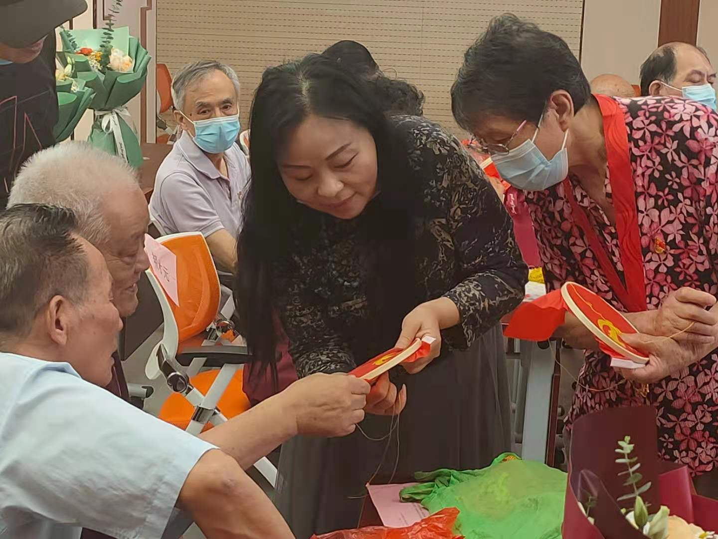 施針、運針、引線......活動現(xiàn)場,80位老黨員手拿黨旗,針線飛舞,黃春萍流連于老黨員之間,耐心細(xì)致地為他們講解漢繡的技巧。“我4歲的時候就開始接觸漢繡了,到現(xiàn)在已經(jīng)有30多年了,我要用一生的精力去研究、推廣漢繡文化。”黃春萍表示,多年以來,她一直致力于發(fā)揚傳統(tǒng)漢繡文化、創(chuàng)新漢繡技藝,從2008年為紀(jì)念汶川大地震而創(chuàng)作的漢繡作品《屹立的國旗》;到2019年為慶祝武漢軍運會創(chuàng)作的《兵兵》;再到今年三月為慶祝中國共產(chǎn)黨建黨100周年而策劃的“繡萬幅黨旗、迎建黨百年”活動,黃春萍將古老的漢繡技藝與時代旋律相結(jié)合,不斷創(chuàng)新,讓漢繡這門發(fā)源于楚地的古老藝術(shù)傳承在新時代煥發(fā)了新的生命力。