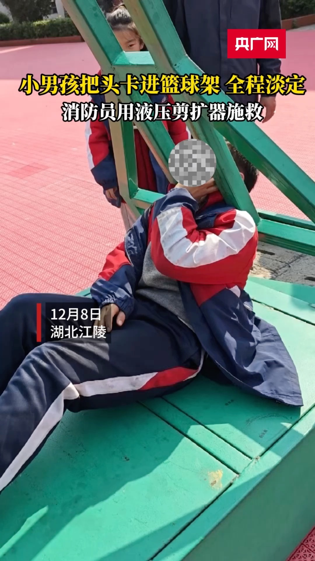 2月8日,荊州市江陵縣一名12歲的六年級學生在操場玩耍時,不慎將頭卡進籃球架,越動卡得越緊。當地消防大隊接到求救電話后,立即派出專業(yè)救援人員,借助液壓擴張剪將籃球架撐開,成功救出小男孩。