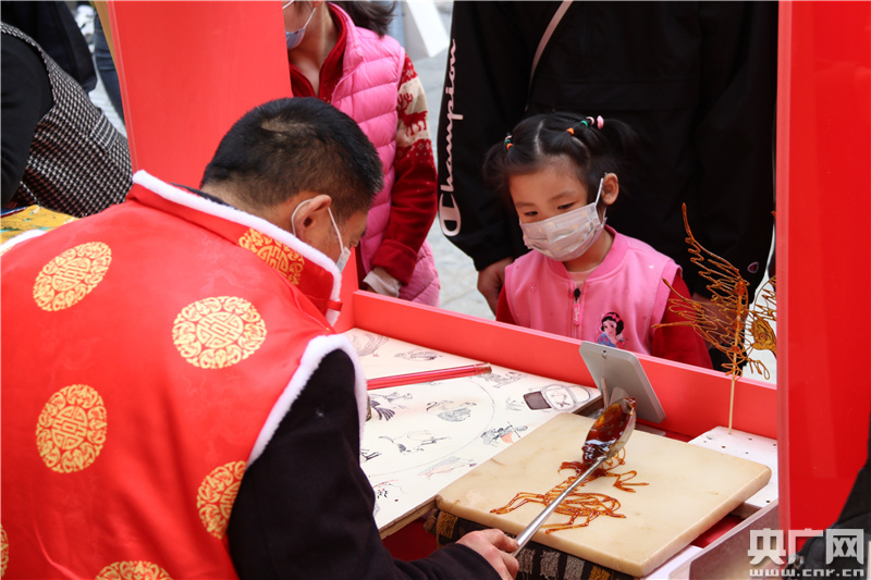 圖為糖畫攤“畫出”年味 央廣網(wǎng)發(fā) 李磊攝