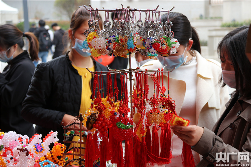 圖為:一些市民對(duì)喜愛的非遺工藝作品愛不釋手 央廣網(wǎng)發(fā) 李磊攝
