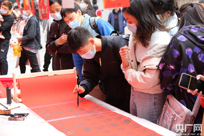 圖為:市民們通過“執(zhí)筆寫!眰鬟_(dá)對(duì)美好生活的祝愿 央廣網(wǎng)發(fā) 李磊攝